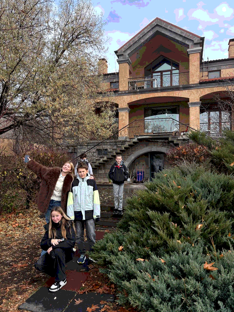 В Ереване ребята из шестого потока готовили гату — сами раскатывали тесто, смешивали начинку и пробовали свои блюда. Они побывали в гостях у наших друзей в Нюберг Ереван: понаблюдали за процессом обучения, познакомились с педагогами и учениками. В Гарни прошлись по старинным храмам, умылись водой из родника, оказались в средневековом горном монастыре Гегард. А еще писали имена на армянском, играли в исторические настолки и делали наконечники стрел из обсидиана под руководством настоящих археологов, рассматривали находки в Национальном музее, шуршали листьями платана, спускались по Каскаду, наблюдая, как город погружается в сумерки, увидели огромную ёлку на площади Республики. В конце поездки даже прошлись по местному рынку, чтобы попробовать тот самый гранатовый сок. Короче, замечали детали, на которые взрослые иногда не обращают внимания.